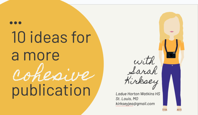 10 ideas for a more cohesive publication Posted on April 11, 2024April 11, 2024 by sarahmkirksey Click here for presentation Share this: Click to share on X (Opens in new window) X Click to share on Facebook (Opens in new window) Facebook Like Loading... Related